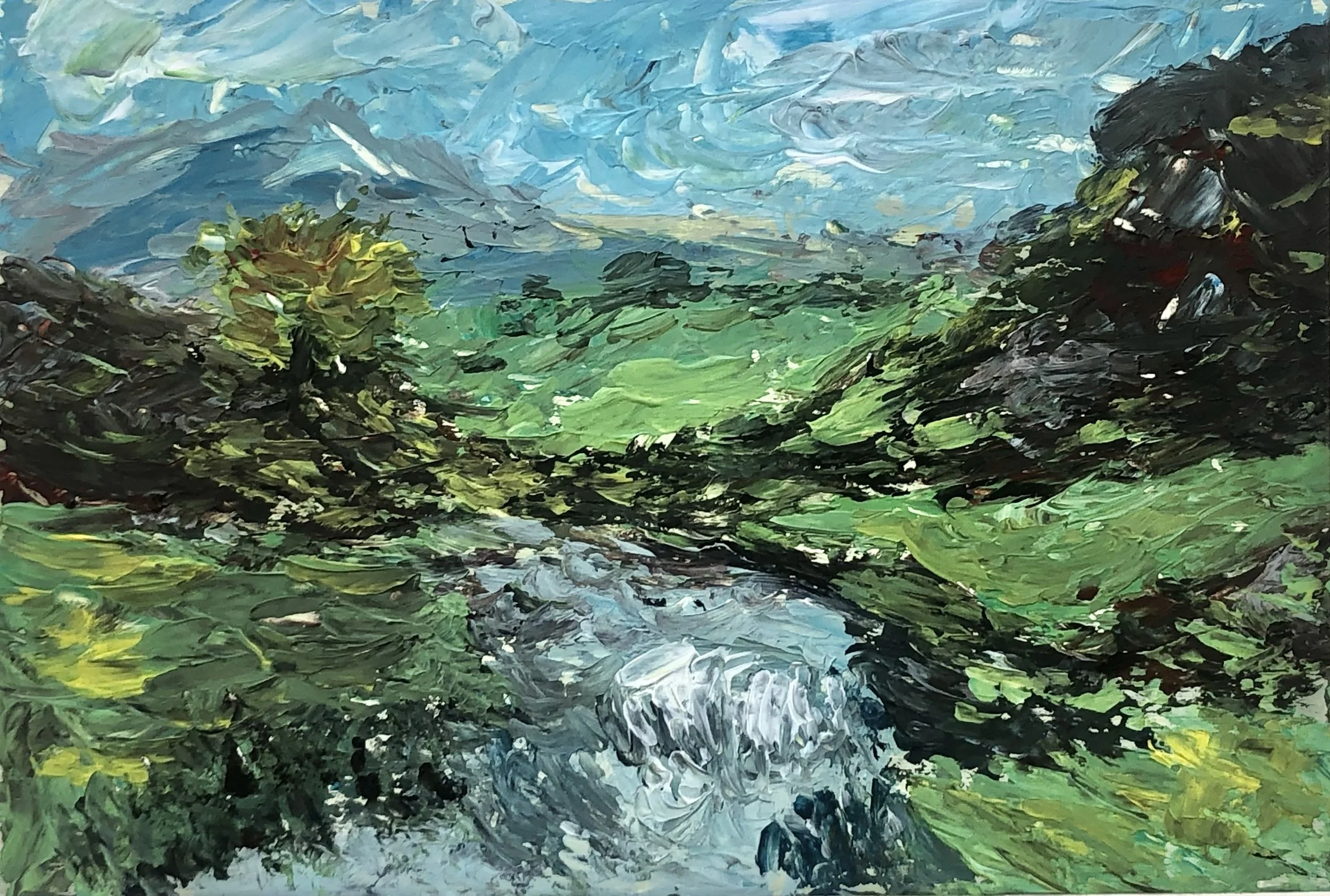 It was the magnificence of the North Antrim coast around the Giant’s Causeway in Northern Ireland that first inspired me to start painting. It continues to be a major muse, with its vigorous rugged coastline studded with jewel-like sandy beaches, its sweeping glens, and especially the interplay of land sea and sky and the ever-changing light.